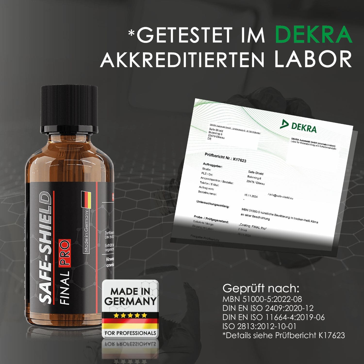 To emphasize this, we even had a DEKRA-accredited testing laboratory conduct several quality tests – with successful certification in multiple classifications.
