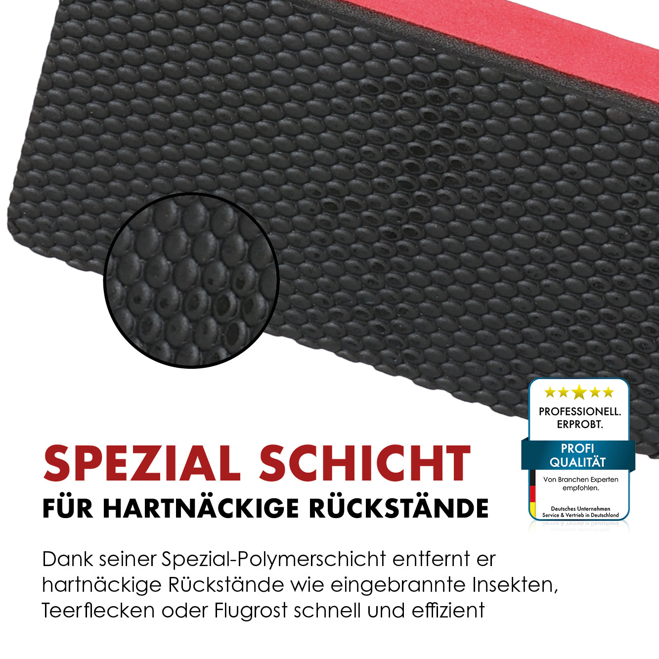 Entfernt hartnäckige Rückstände wie Teer, Flugrost und Insektenreste zuverlässig.